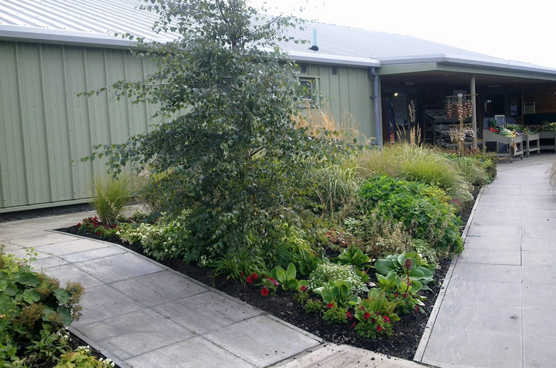 Planting designs created for borders and embankments surrounding a newly constructed farm shop on the periphery of Edinburgh.