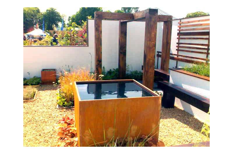 This show garden was designed and built with the help of the charity Enable Scotland to show the power of what can be achieved if people work together. The garden was designed around a series of interlocking squares, and comprised a darker, paved seating area enclosed by a box shaped pergola and a more open gravel area enclosed by raised beds and containing a cube of water at its centre that was full of light and movement. All of the plants in the garden were brought on and cared for by one of Enable Scotland's projects at a plant nursery in Edinburgh.